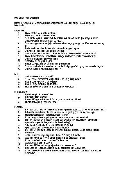 Dit is een Due Diligence Vragenlijst in het Nederlands.